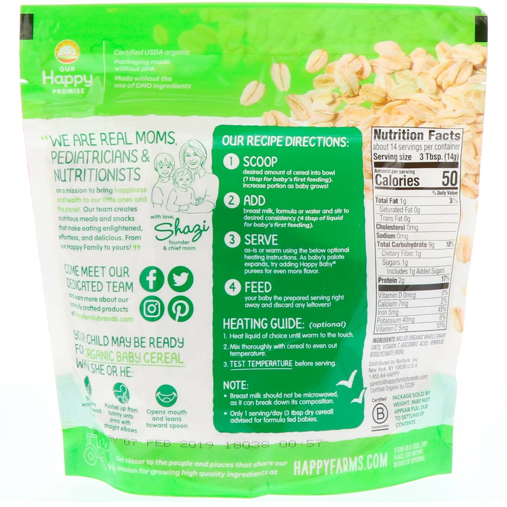 You can even add babys favorite Happy Baby puree for more flavor. Juillet 16 2016 505 am. Happy Baby Organic particular oatmeal cereal is considered the best because the happy baby brand centers its ingredients on enriched nutrients and natural ingredients.